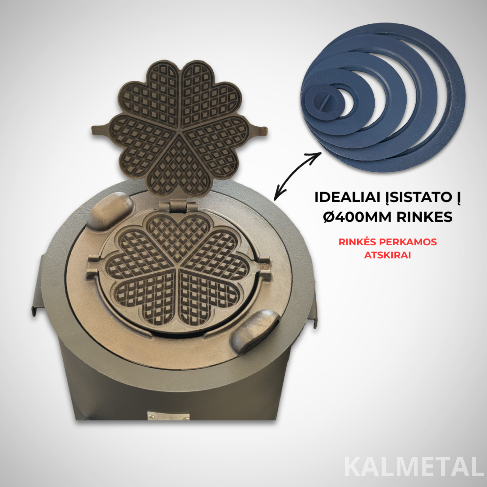 - Idealiai įsistato į Ø400mm rinkes (perkamos atskirai) - https://kalmetal.lt/rinkiu-komplektas-o400-284