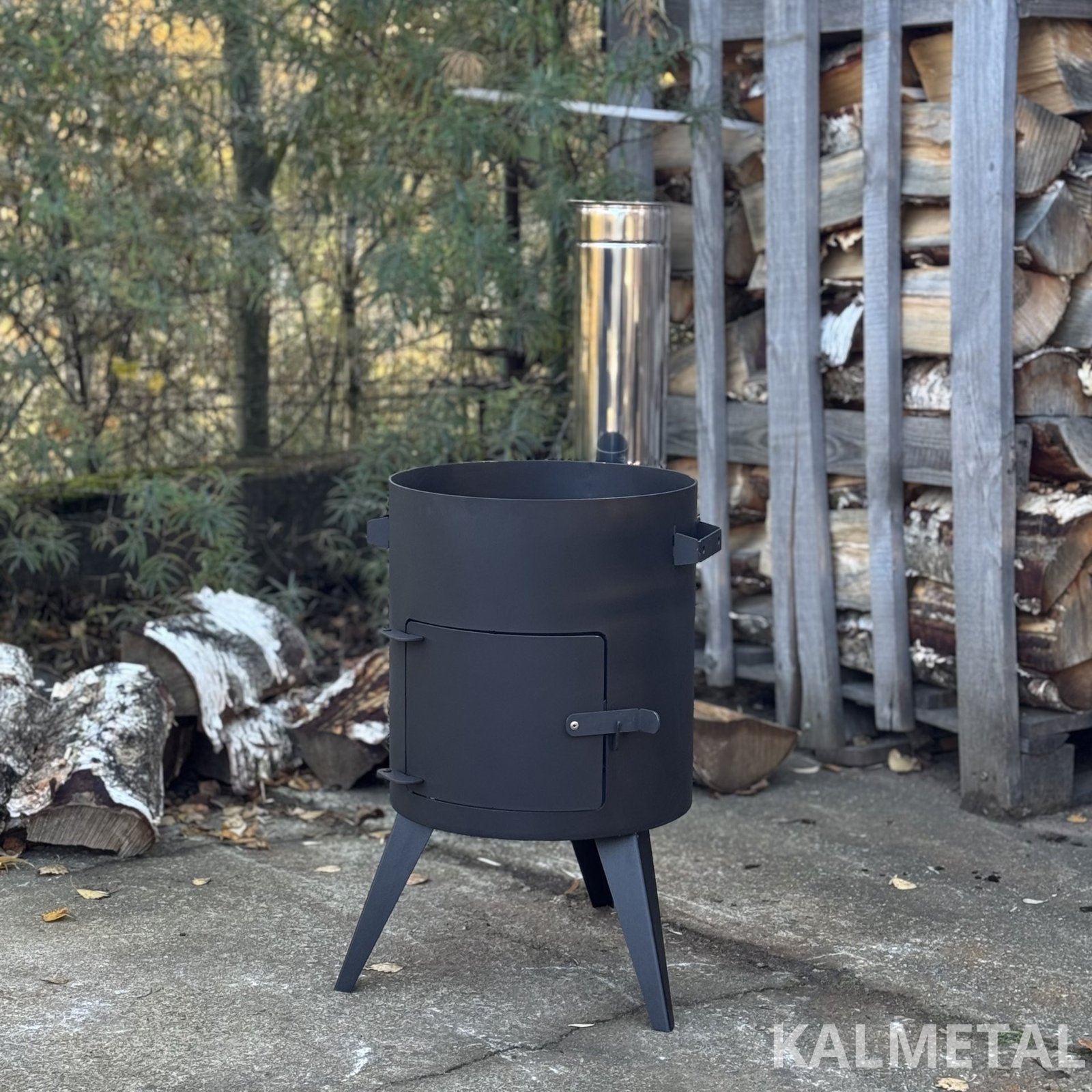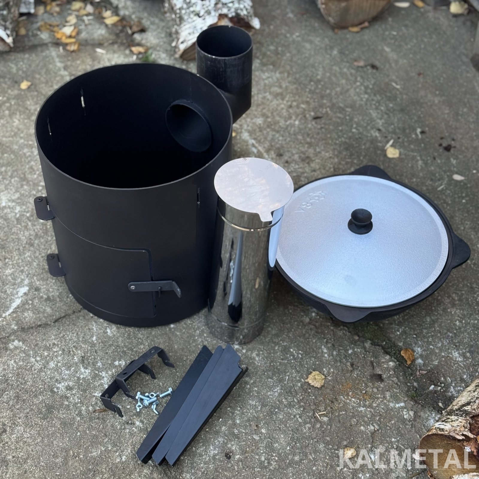 Pirkdami šį rinkinį, gaunate - ECO 3MM storio KROSNELĖ SU KAMINU + UZBEKIŠKAS KAZANAS PLOKŠČIA APAČIA IŠORĖJE