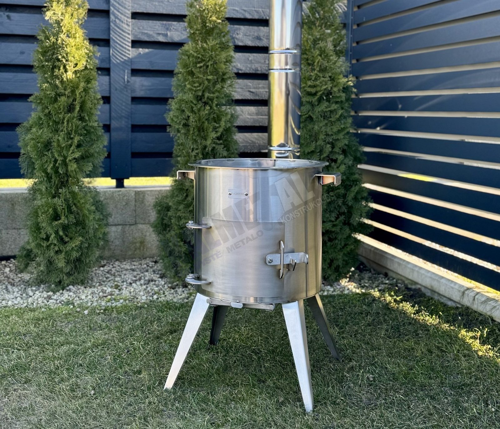 Removable stainless steel chimney and elegant legs.