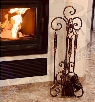 Luxury Fireplace Tool Set – perfect to complement your fireplace. Set includes: Stand, poker, shovel, brush Product features: High-quality steel Height: 100 cm Width: 35 cm Depth: 35 cm Weight: 10 kg The product is sandblasted, primed, and then painted