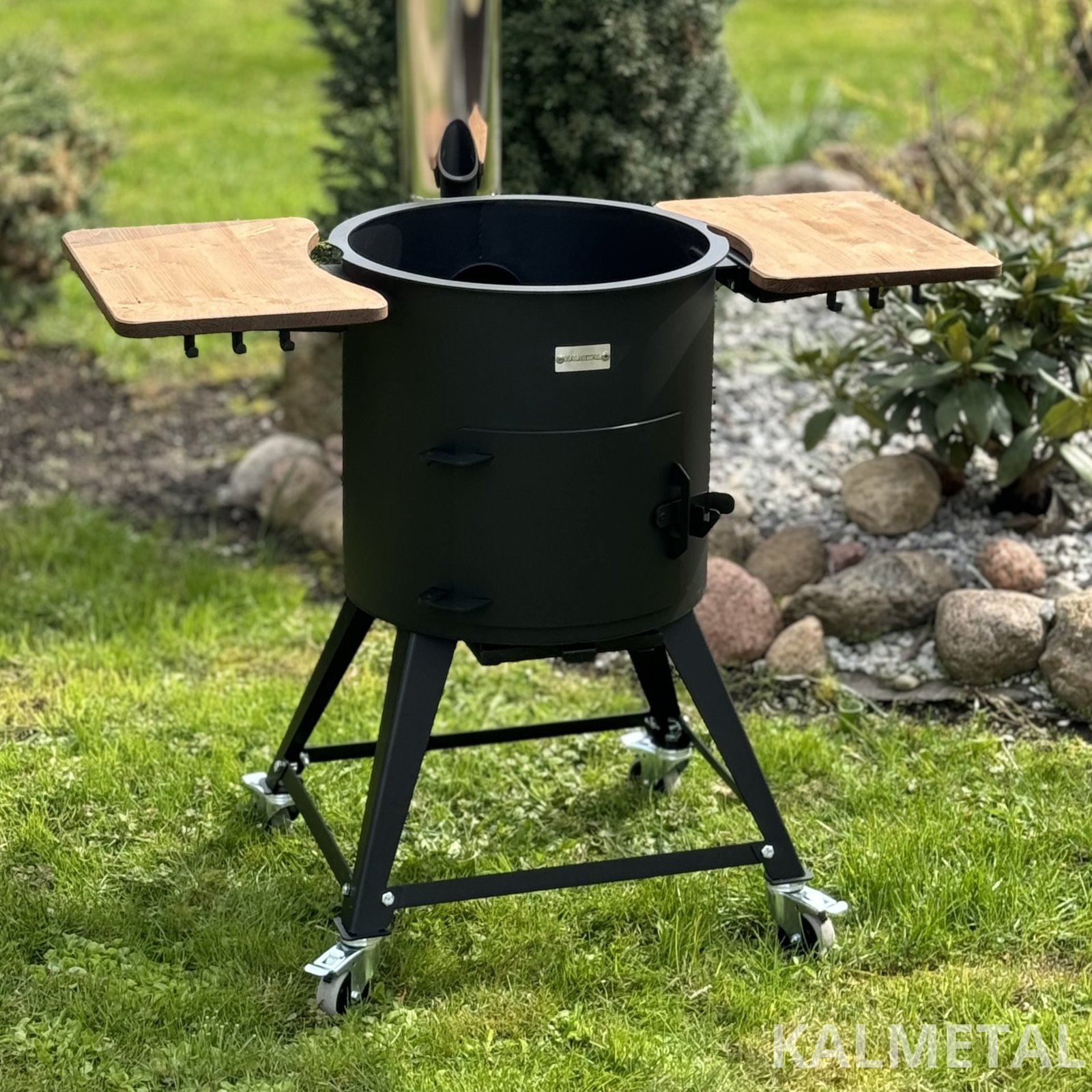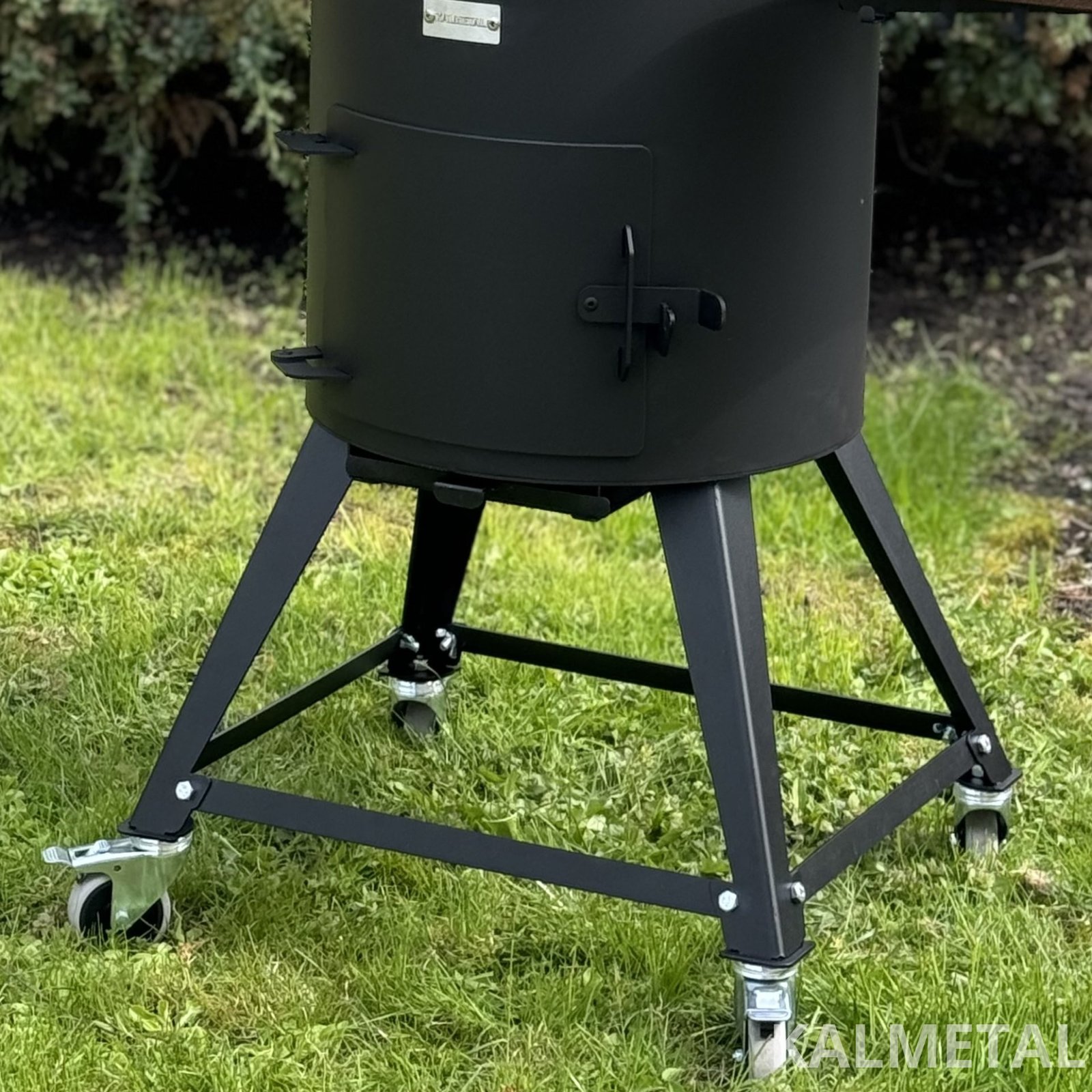 PREMIUM 5MM kazan stove with chimney, shelves, and wheels.