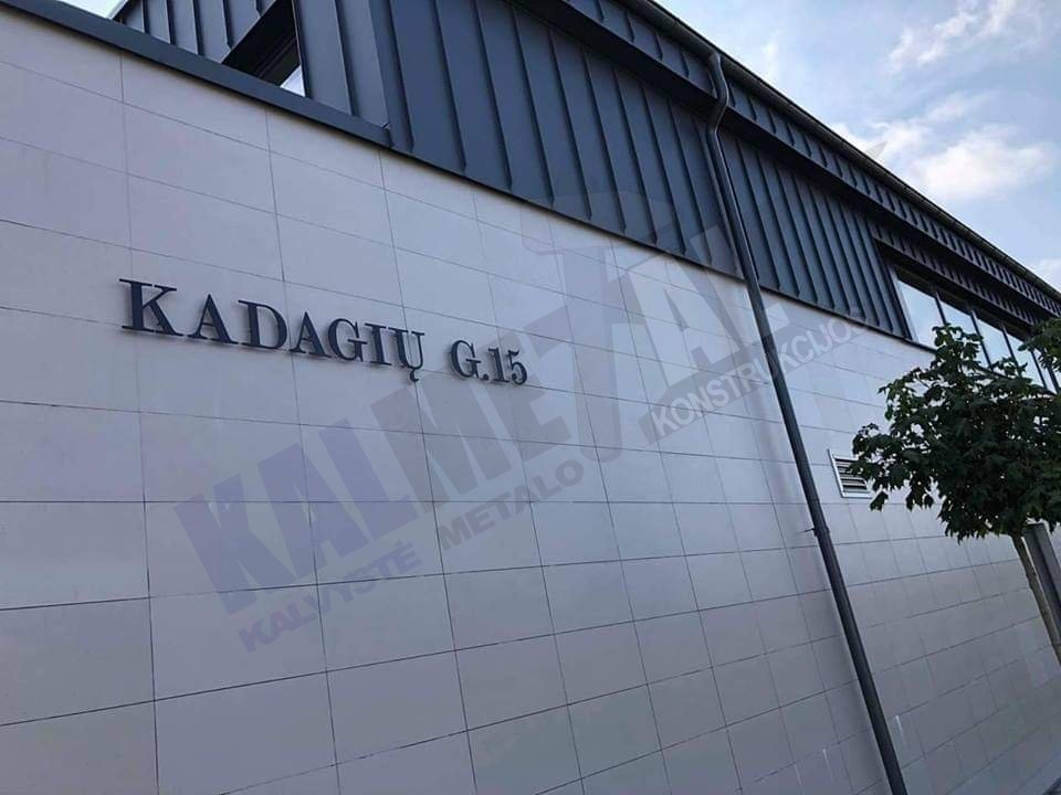Atskirų raidžių gatvės pavadinimas ir numeris gaminamas iš aukštos kokybės 3mm storio plieno, tuomet smėliuojamas, gruntuojamas ir dažomas milteliniu būdu jūsų pasirinkta spalva. Specialus tvirtinimas suteiks išskirtinį vaizdą jūsų namui.