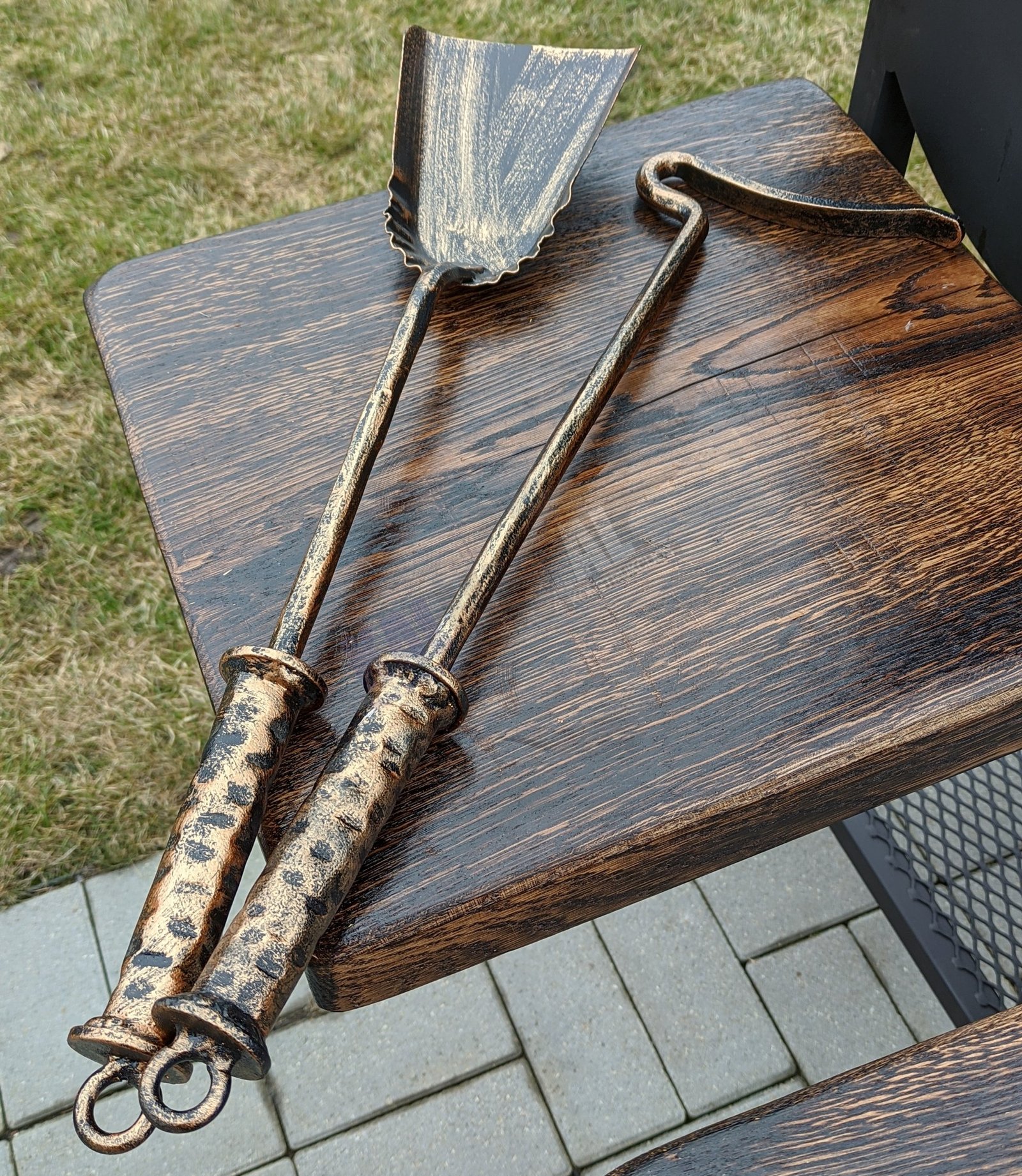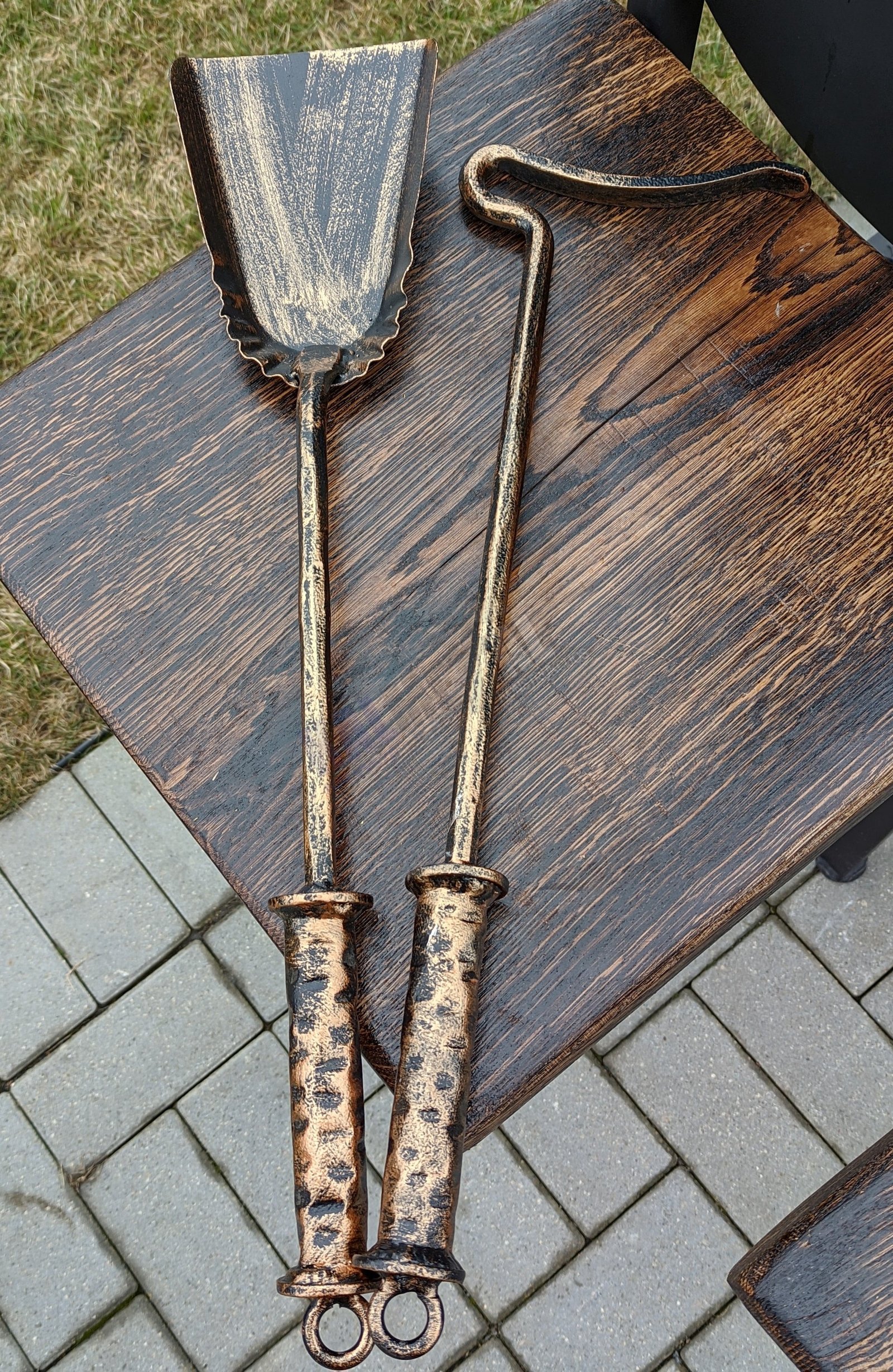 Kalviškas prabangus žarsteklio ir semtuvėlio komplektas.