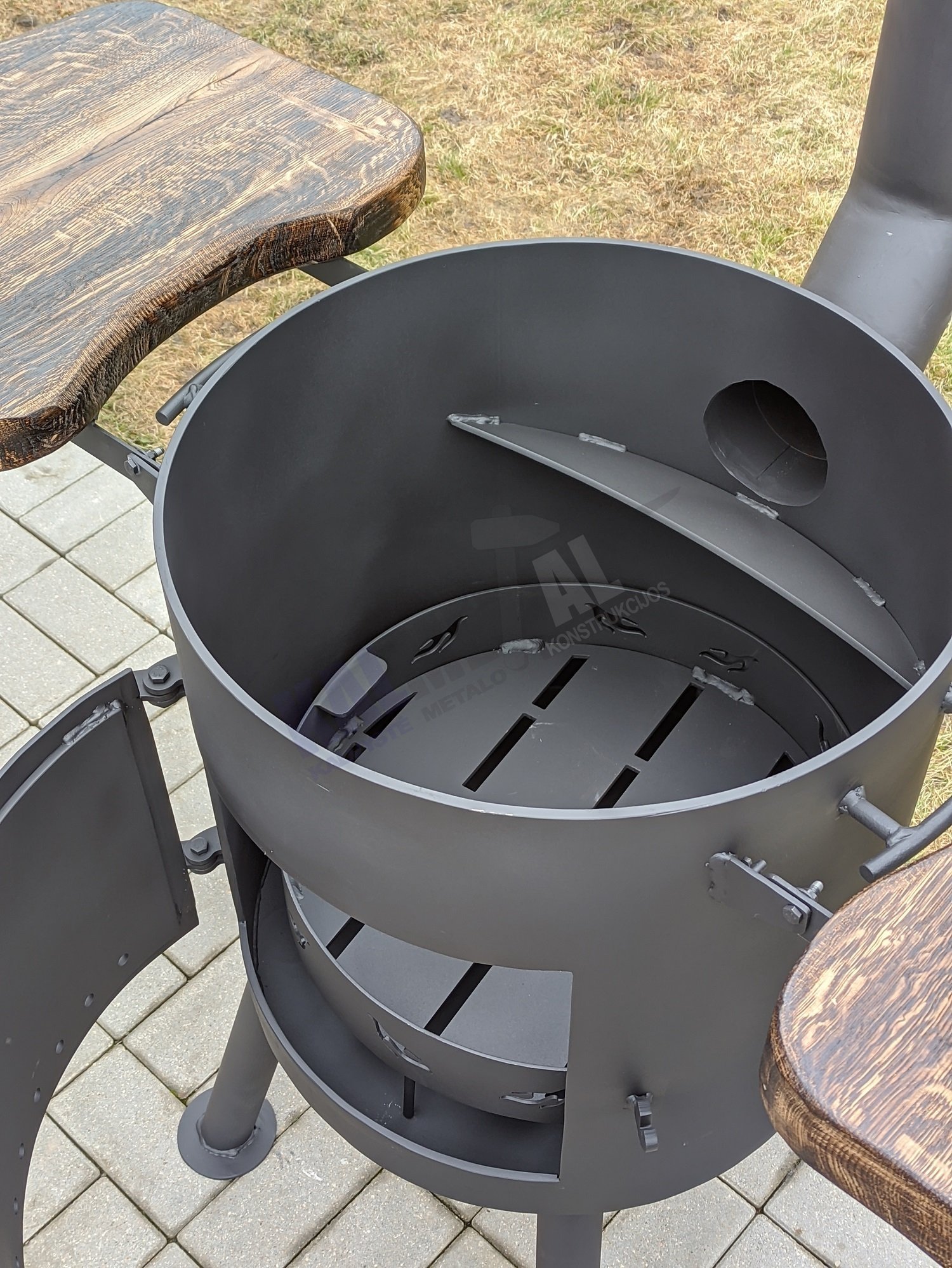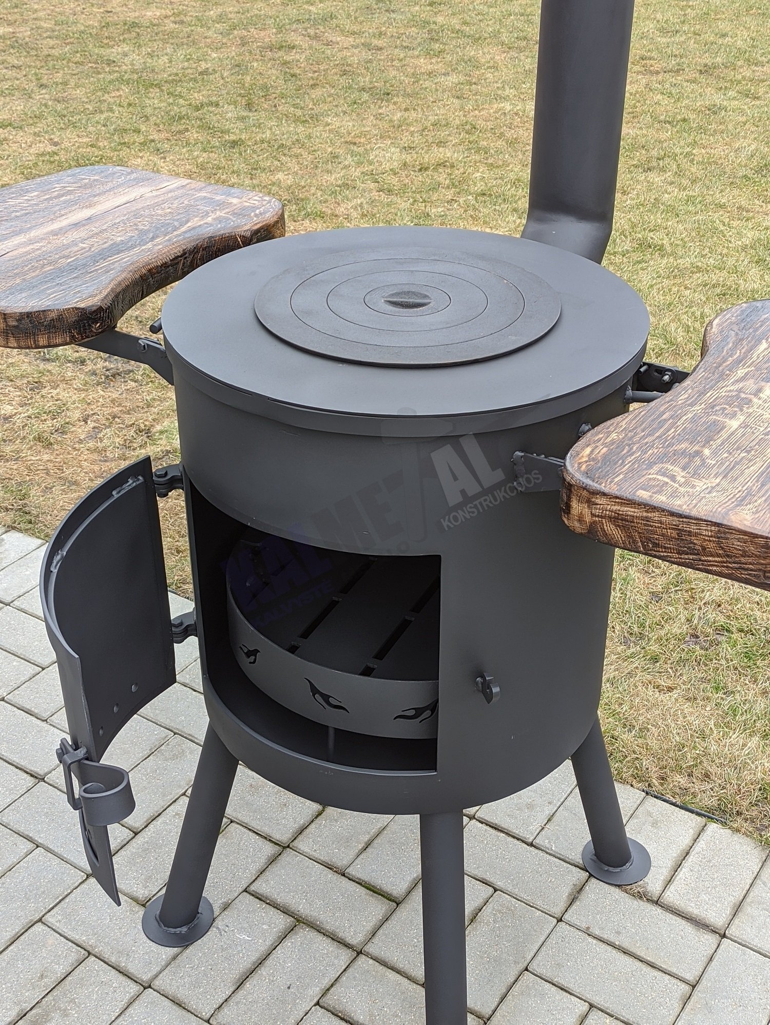 Kazano krosnelė su dviem atlenkiamomis lakuotomis ąžuolinėmis lentynomis 16-22L puodui
