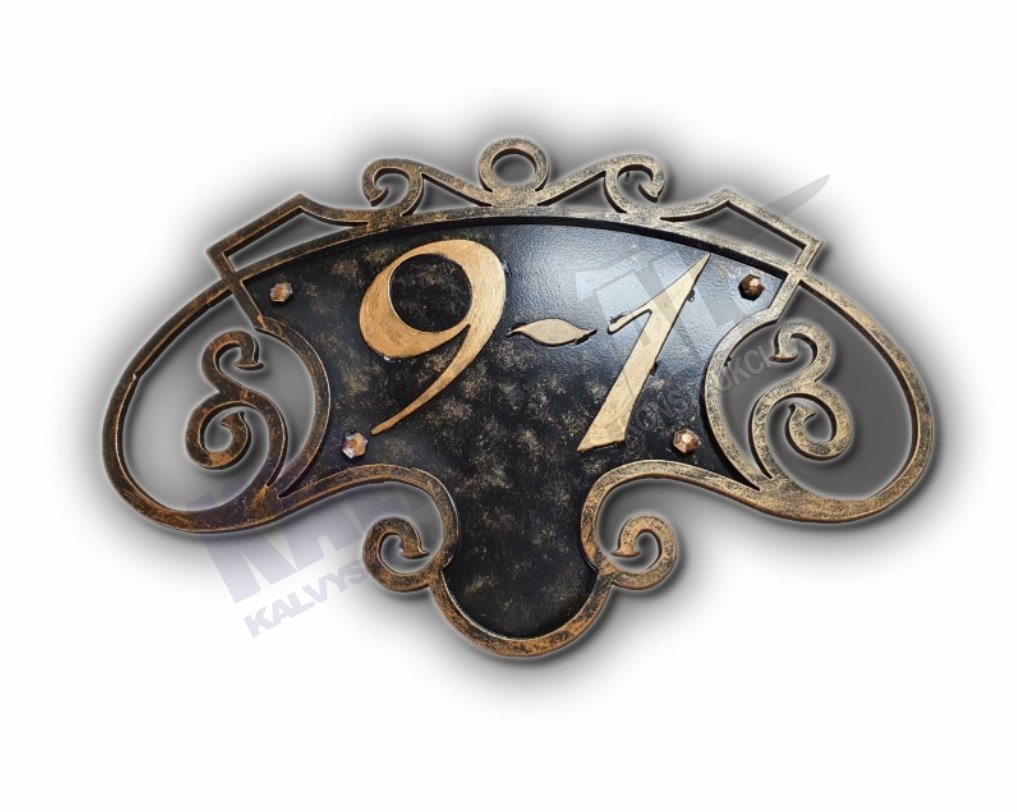 Namo numeris kalviškame rėmelyje pagamintas iš aukštos kokybės plieno, tuomet smėliuojamas, gruntuojamas ir dažomas milteliniu būdu jūsų pasirinkta spalva.
