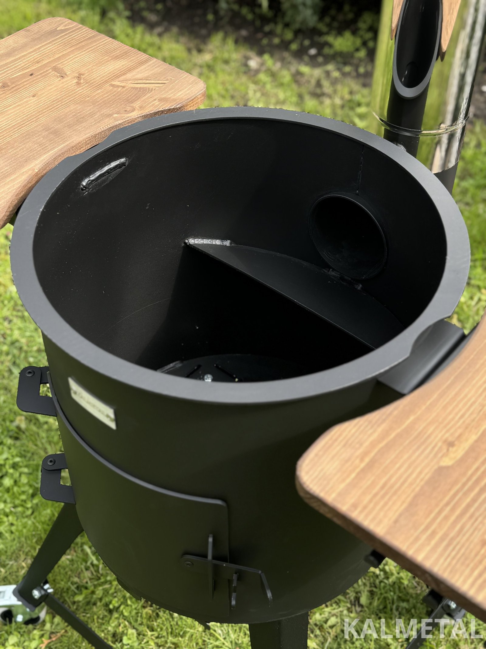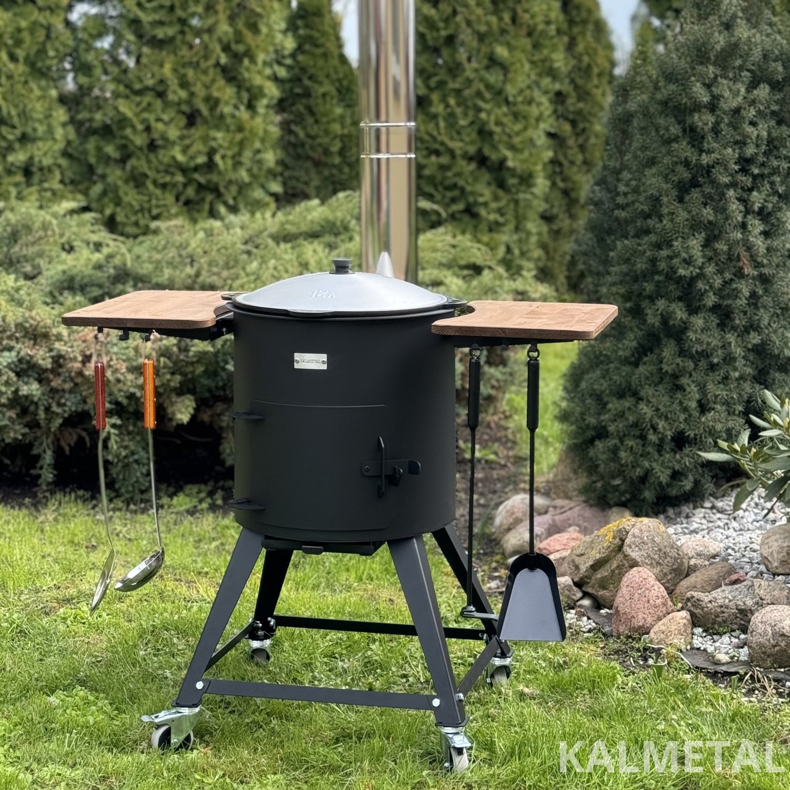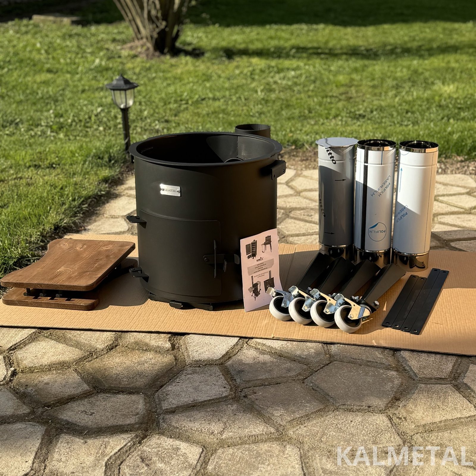 PREMIUM 3MM kazano krosnelė su kaminu, lentynomis, ratukais.