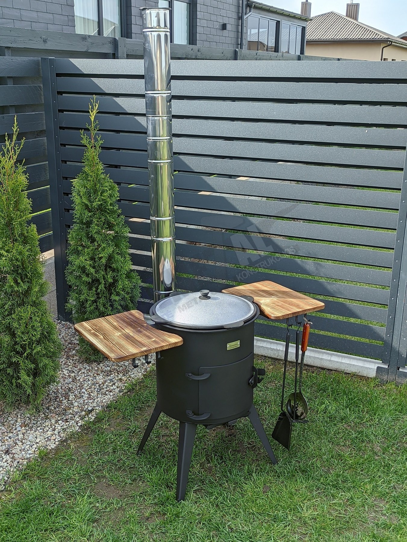Pirkdami šį rinkinį, gaunate - KROSNELĖ SU KAMINU + 12L PUODAS + LEGANAS + KIAURASAMTIS + SAMTIS