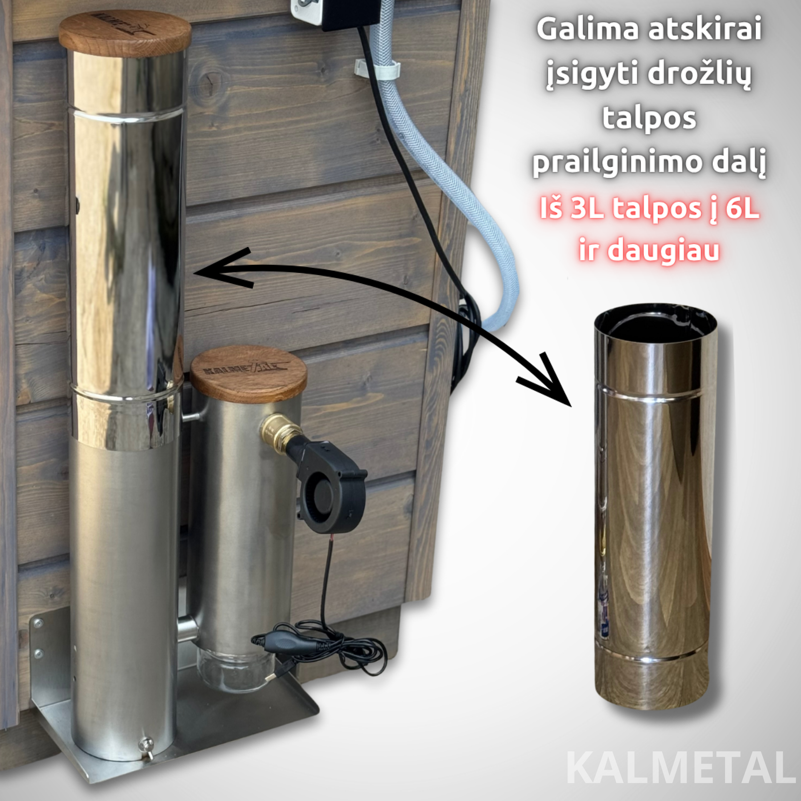 Talpa gali būti didinama papildomomis 3 litrų ilginamosiomis dalimis