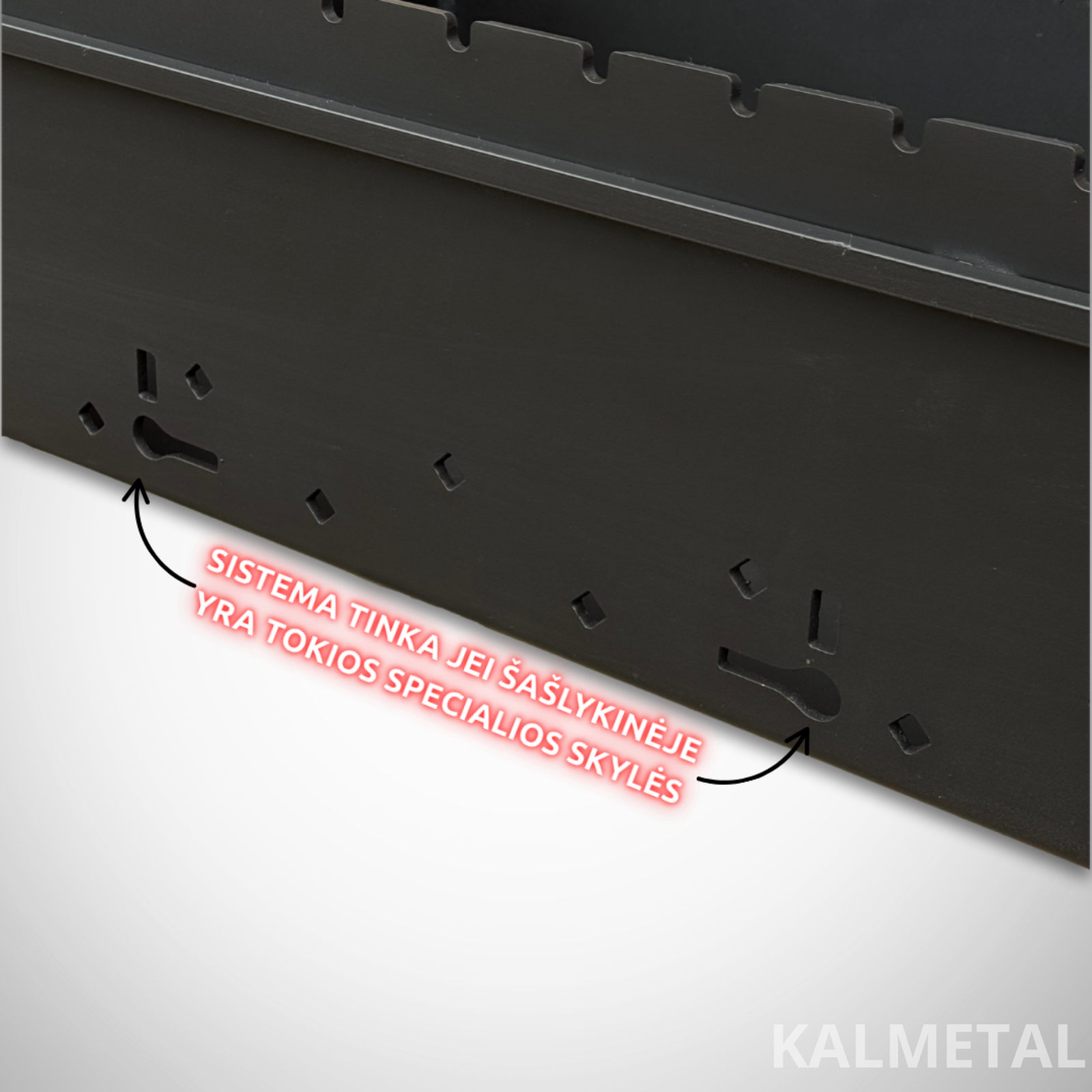 • Sistema tinka, tik tada kai šašlykinė pirkta pas mus ir turi korpuse reikalingas specialas skyles sistemos naudojimui (žr. nuotraukas)