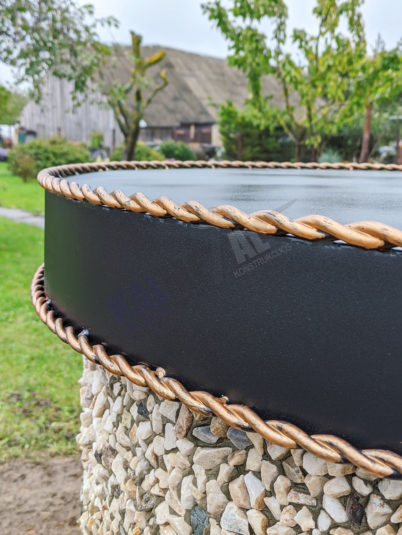 Spalva juoda ir pasendintos detalės jūsų pasirinktu atspalviu (sendinta sidabru arba auksu arba sidabru)